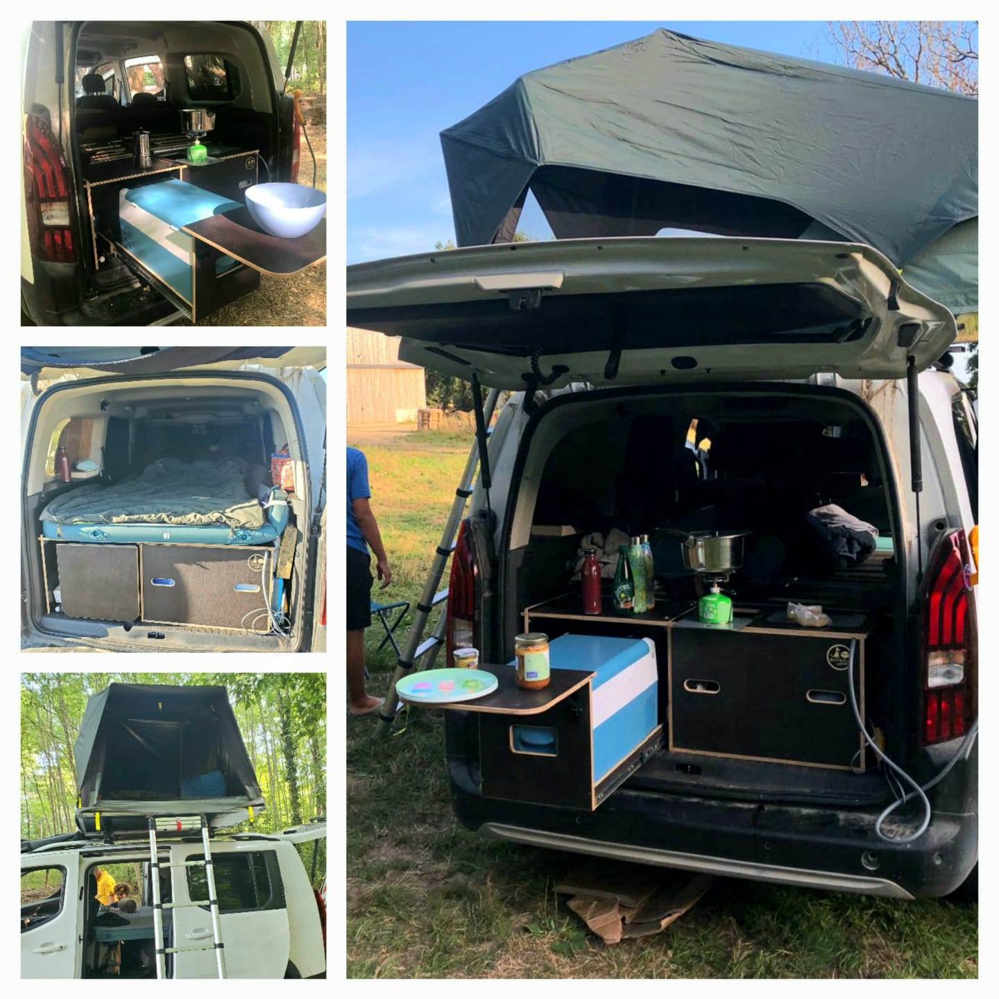 « Le kit correspond tout à fait à nos attentes ; simplicité, robustesse et modularité ! Avec les accessoires adéquats fournis dans le kit et ceux qui sont venus compléter la panoplie, on est vraiment autonomes et en capacité de s’arrêter où l’on veut pour camper. On a pu tester le kit dans ses différentes fonctions (banquette, lit etc…) et c’est vraiment cool de constater que l’ensemble à été bien pensé y compris quand il s’agit de tout ranger et que tout tient dans le coffre !! »